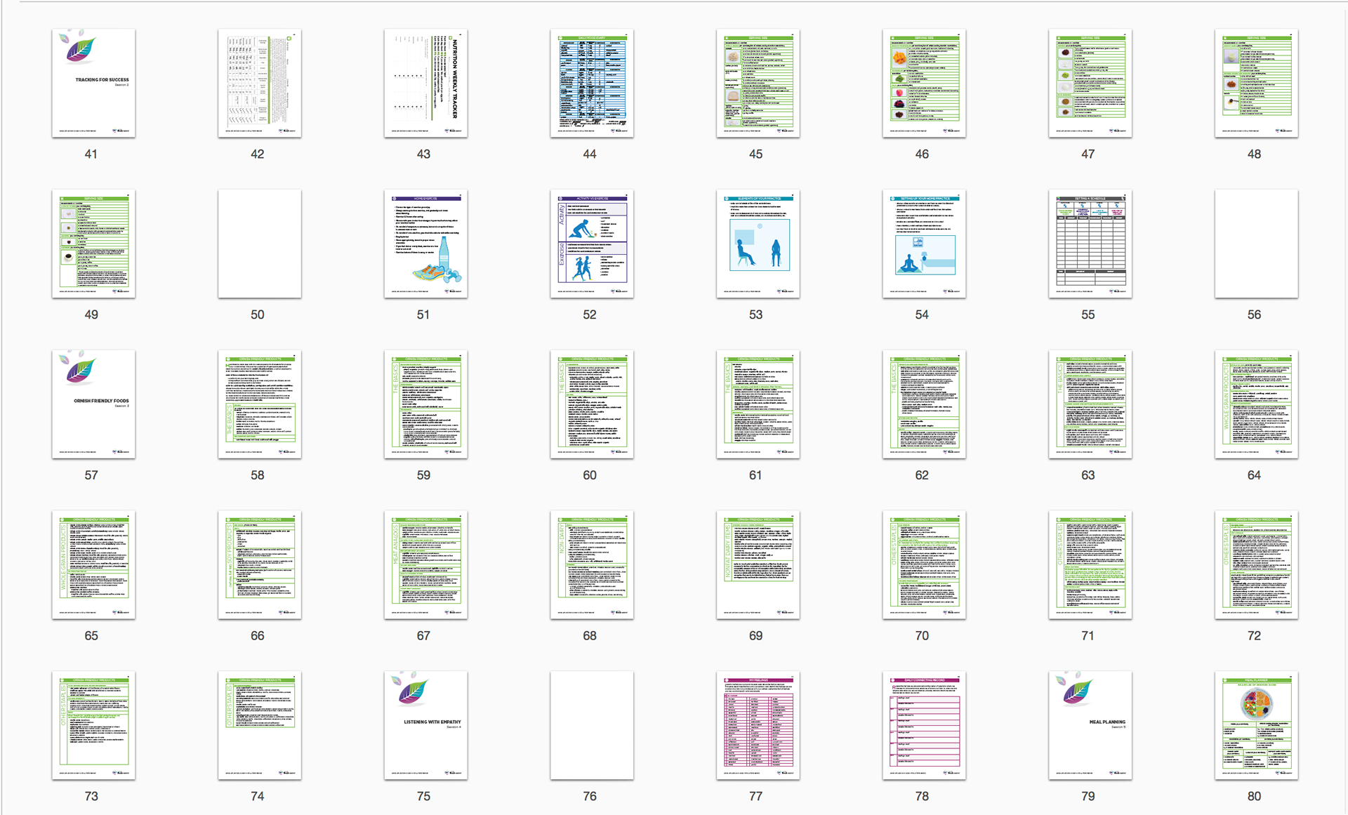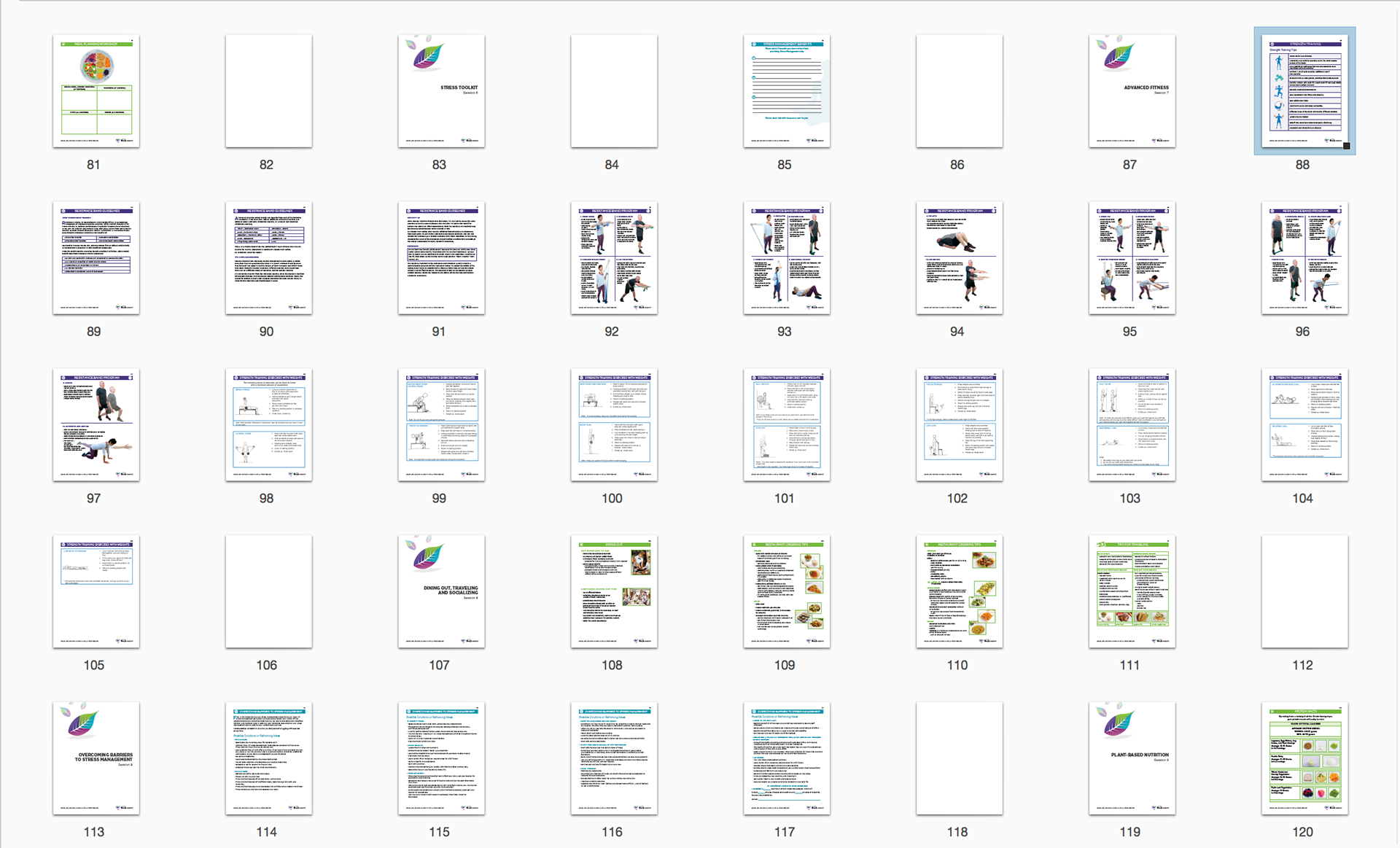 The spreads below are thumbnails of a 120 page workbook I created in 2017-18 from design through production for Ornish Lifestyle Medicine in Sausalito, California. Since this extensive work by Dr. Ornish and his team is proprietary and used for training purposes, I am only showing the body of work at this level, to give an understanding of the volume and complexity of the project.